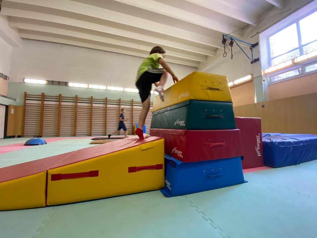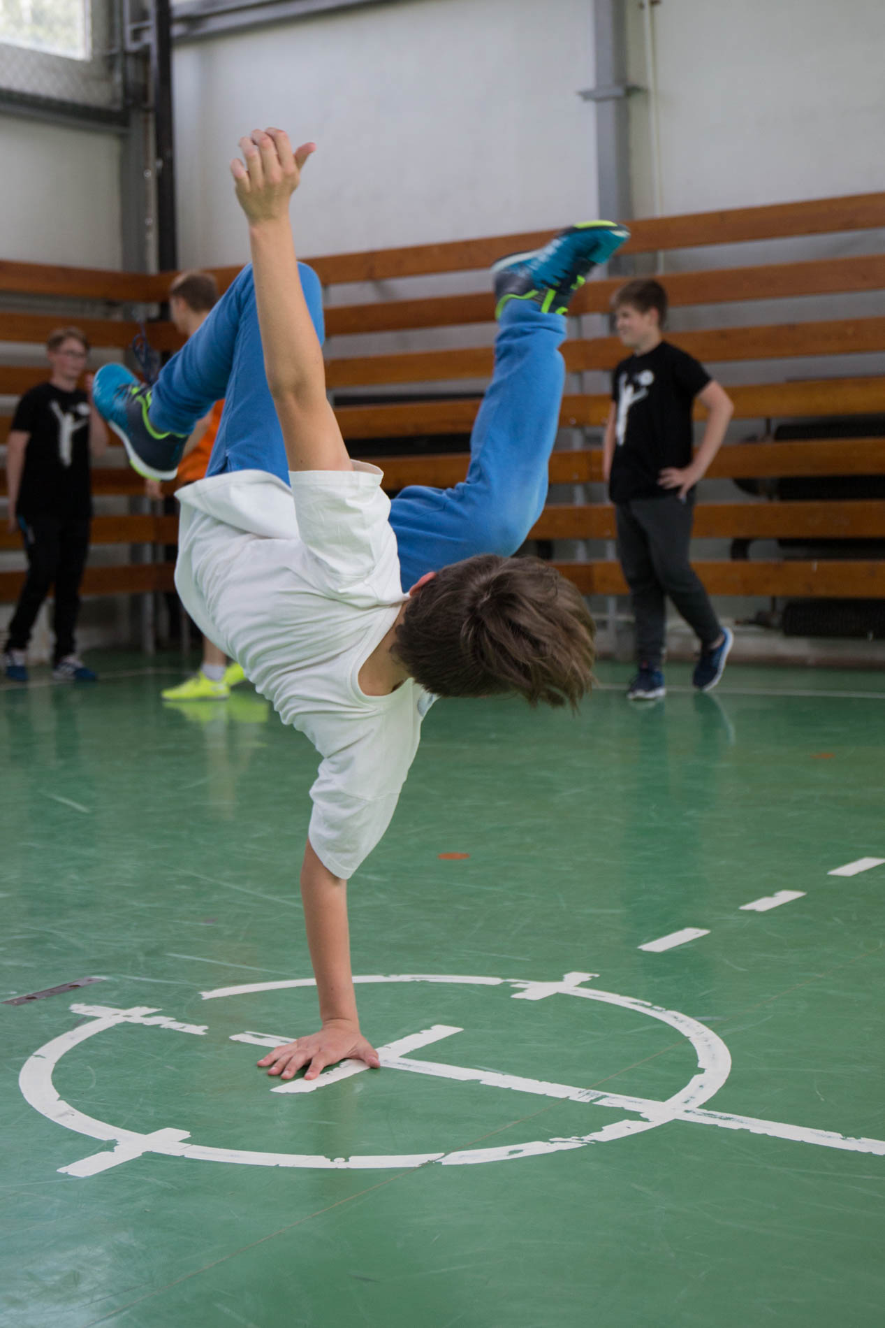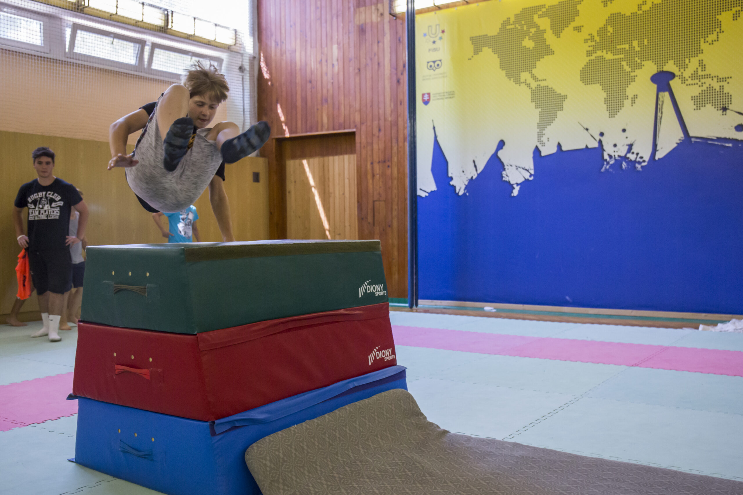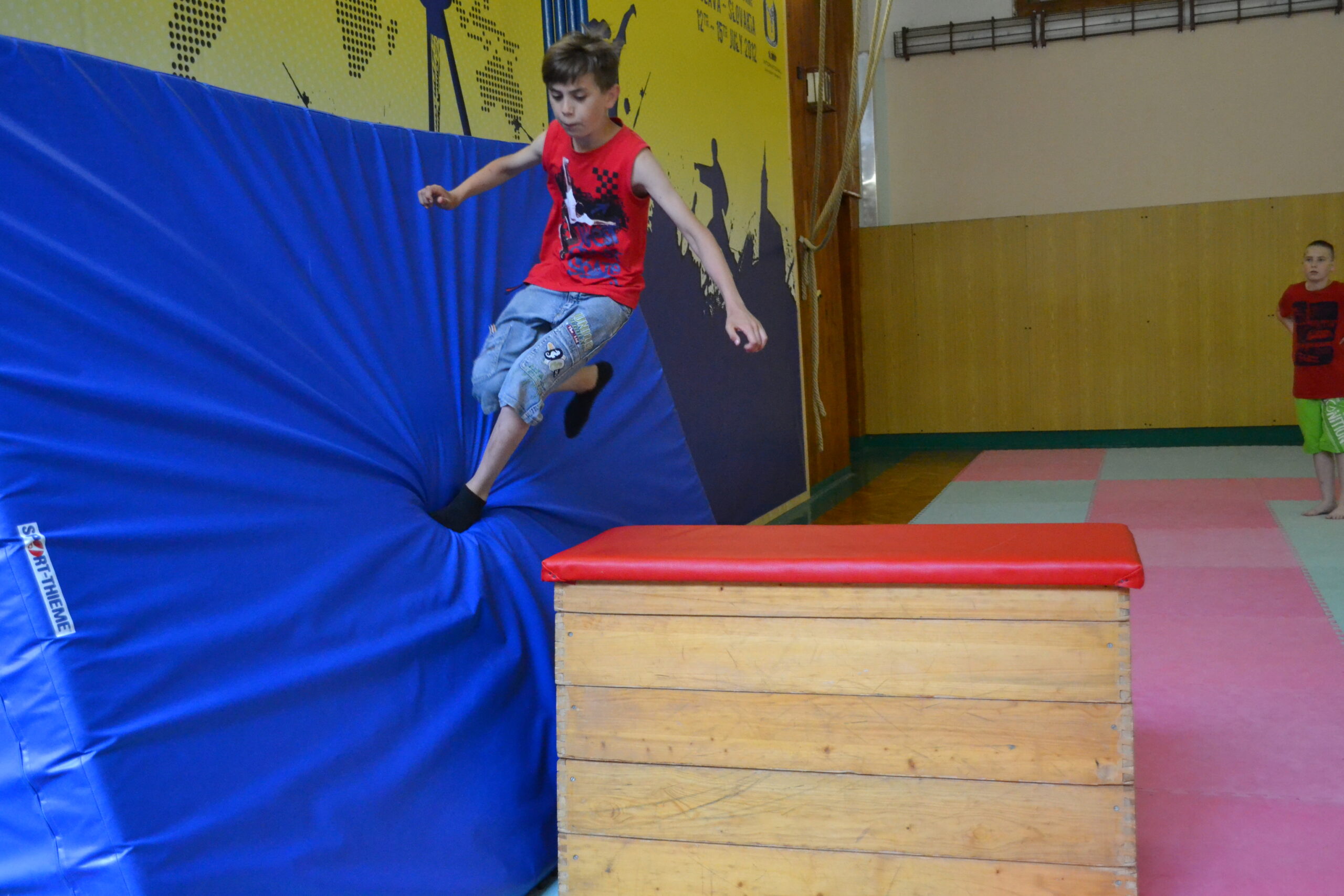 TRÉNINGY – 2× denne tréningy s parkourovými trénermi. Tréning zahŕňa rozvoj fyzickej kondície, koordinácie a rovnováhy. Súčasťou je beh, skákanie, lezenie, premety, doskoky, saltá vpred aj vzad. Pokročilejšie deti sa venujú freerunu. Nácvik parkour zostavy na záverečnú BENI party.